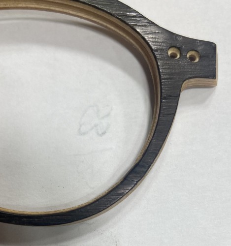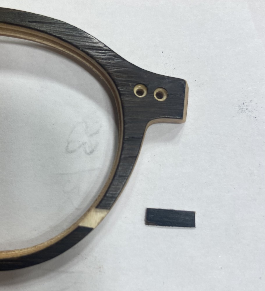 Après - En urgence pose d'une plaque de renfort permettant la ré-utilisation de la lunette, en attendant le prochain RV chez l'Ophtalmologiste